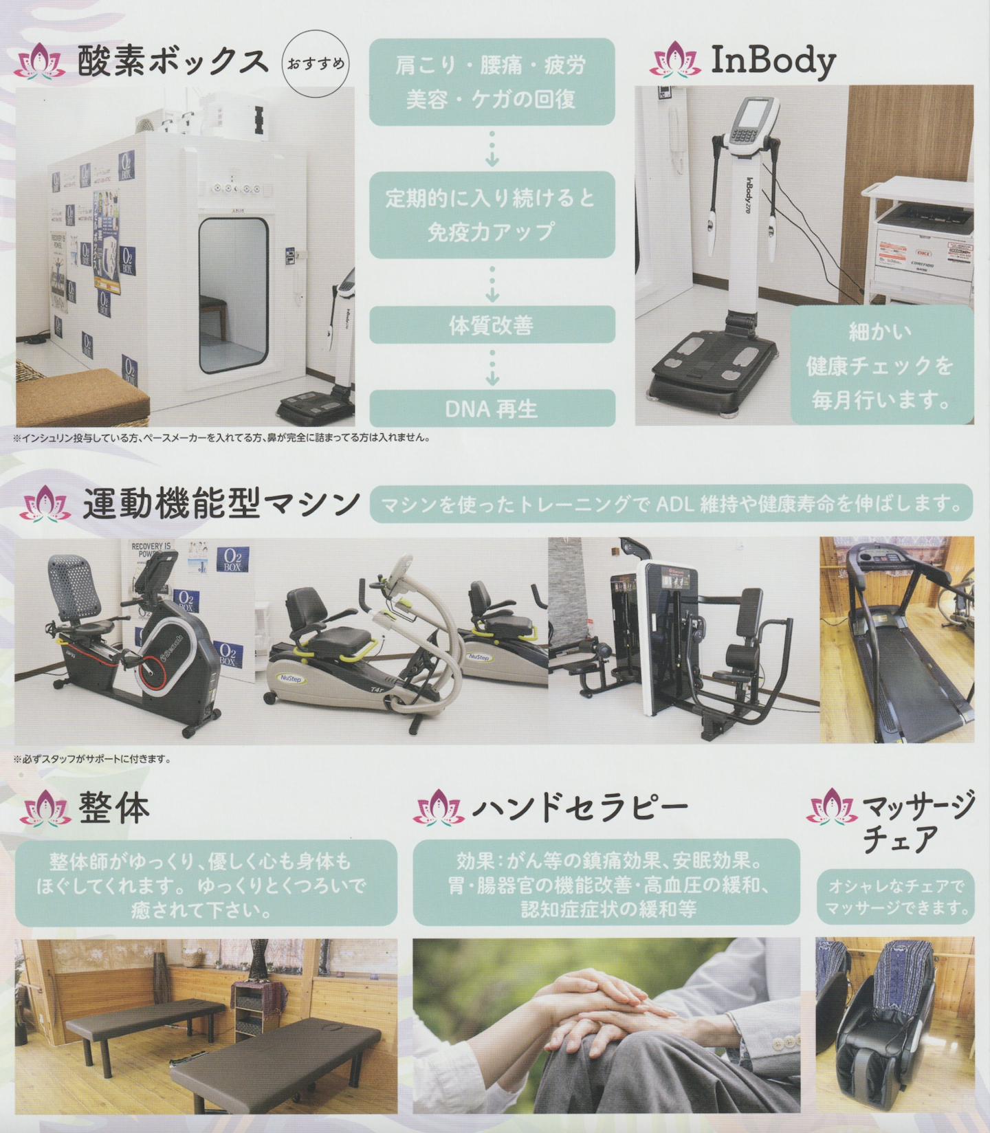 本格的なマシンや大型酸素BOXも完備。